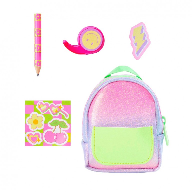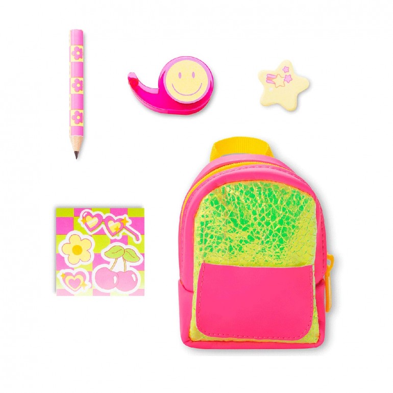 Collectible mini backpacks with neon design. Includes mini surprise stationery accessories that actually work.