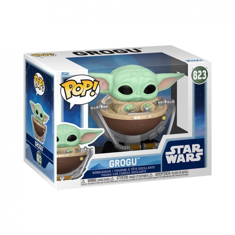 Funko Pop! vinyl figure of the character Grogu from the Star Wars franchise The Mandalorian and Grogu. Features Grogu inside his iconic floating stroller, in a pose representative of the series. Ideal for collectors. Approximate height: 10 cm.