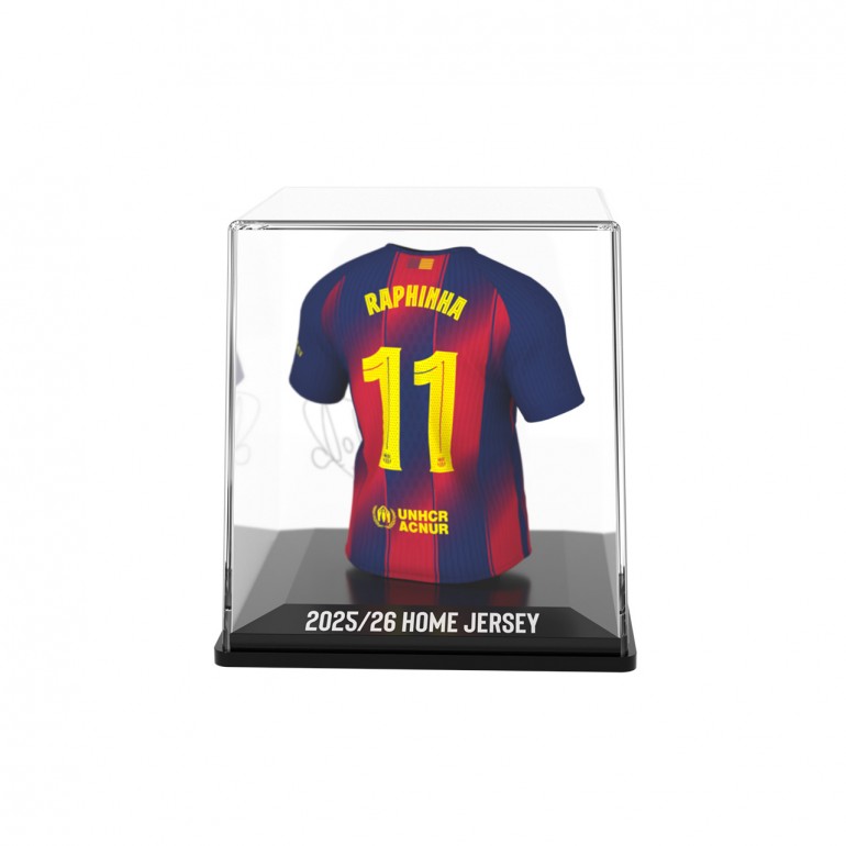 Are you a fan? Take the FC Barcelona 2025/26 Home by Raphinha home and show your passion. The shirt is made of vinyl, acrylic and biodegradable plastic.