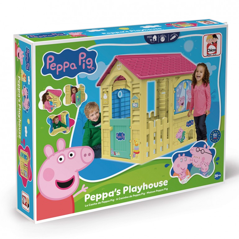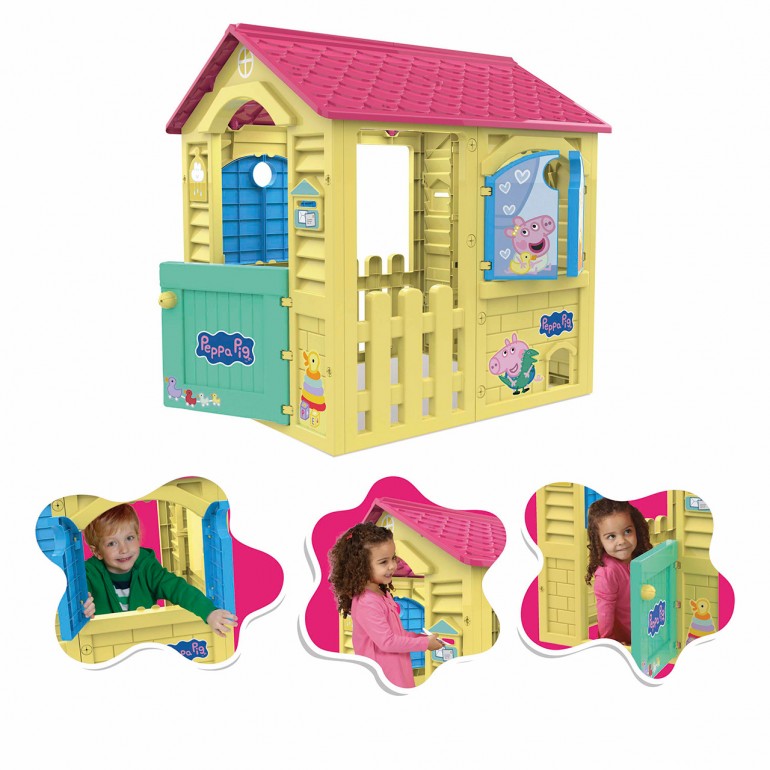 La Casita Peppa Pig está decorada con los personajes preferidos de los más pequeños, con los que juegan, aprenden y se divierten a diario. Las casitas de juguete permiten que niños y niñas establezcan sus propios roles emulando su entorno y reproduzcan e interpreten diversos papeles, practicando juegos de imitación muy importantes en su formación.