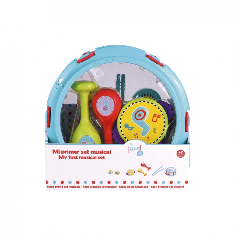Set musical para los más pequeños que incluye además de un tambor, un juego de maracas y un juego de castañuelas y una pandereta con colores divertidos. Es perfecto para la estimulación auditiva de los niños más pequeños. Pensado para niños a partir de 2 años.