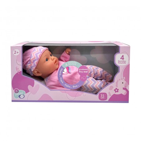 MUÑECA DE CUERPO BLANDO CON SONIDOS VEST ROSA 30 CM