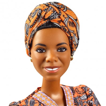 Barbie homenajea a la escritora, autora, activista y educadora Maya Angelou, cuyos numerosos premios y galardones incluyen más de 50 doctorados honorarios y la Medalla Presidencial de la Libertad. Con una réplica en miniatura de su prolífica autobiografía, la muñeca Maya Angelou de Barbie lleva un pañuelo en la cabeza y un vestido largo con estampado de flores. Se incluyen accesorios adicionales, como anillo de oro, brazalete, reloj y pendientes.