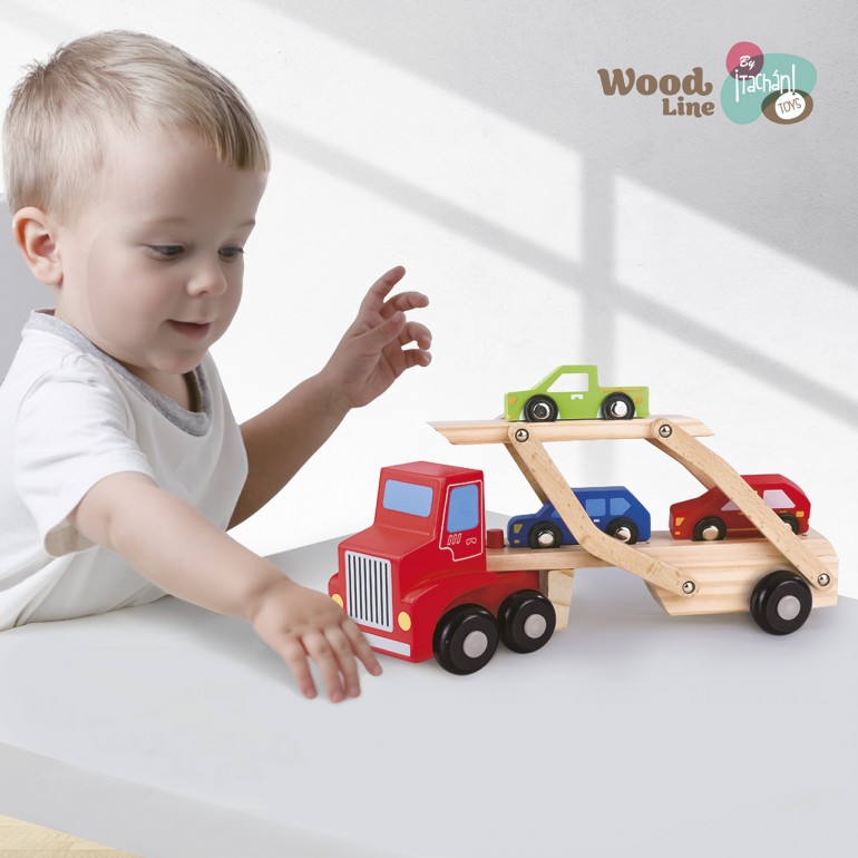 Camión de madera de 2 pisos con 3 coches incluídos. Los productos tienen la certificación FSC, lo que garantiza que la madera con la que estan fabricados proviene de bosques que preservan la biodiversidad y estan gestionados de forma beneficiosa y ambientalmente responsable.