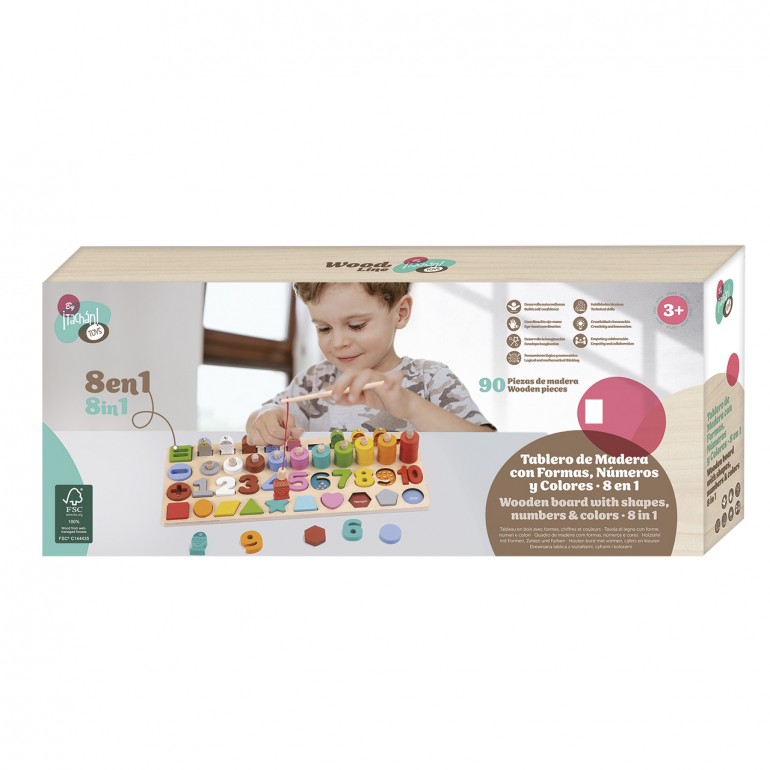 Fomenta el aprendizaje tanto de colores, como de números. Es un set muy completo porque también incorpora una caña imantada para poder coger algunos elementos. Los productos tienen la certificación FSC, lo que garantiza que la madera con la que estan fabricados proviene de bosques que preservan la biodiversidad y estan gestionados de forma beneficiosa y ambientalmente responsable.