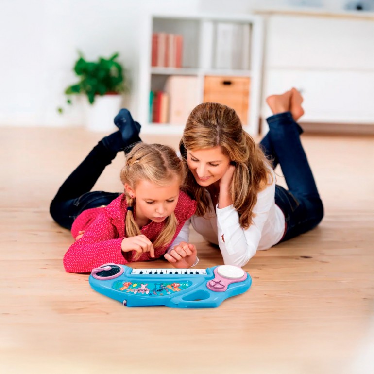 Divertido teclado electrónico de Stitch. Cuenta con 4 tipos de efectos de sonido, luces LED y 1 micrófono incluido.