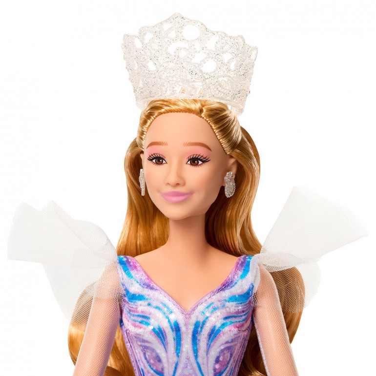 ¡Los niños y niñas pueden crear una colección inspirada en el glamur de la Bruja del Norte con la encantadora muñeca de Glinda de Wicked: For Good, de Universal Pictures! Deslumbra con un vestido de organza de primera calidad, fiel a la película, con hombros ondeantes y brillantes mangas largas.Todo gira en torno a los accesorios de la muñeca Glinda: ¡su icónica varita, su tiara y sus característicos tacones! Revive toda la magia de Wicked: For Good con esta muñeca de Glinda, que cuenta con 11 puntos de articulación, lo que la hace ideal para jugar con ella o exponerla.