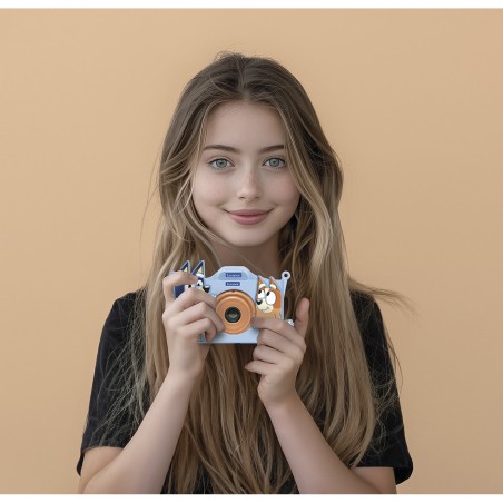 Captura fotos, vídeos, escucha música MP3 y juega en la misma cámara, ¡ideal para estimular la creatividad de los niños! Personaliza tus fotos con 15 marcos incluidos en los colores del mundo Bluey. No olvides tu protección de silicona de Bluey y Bingo para reconocer tu cámara al instante.