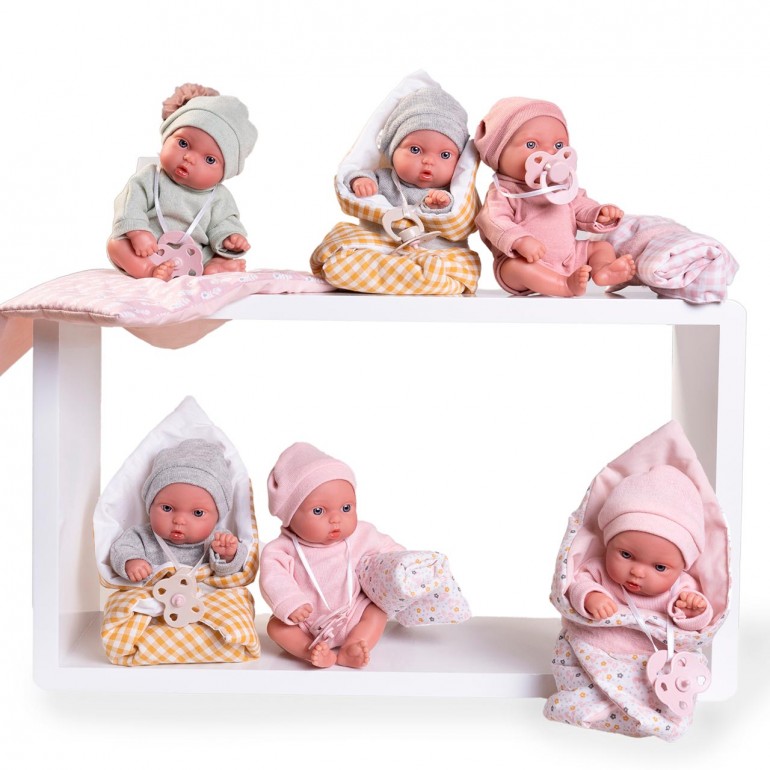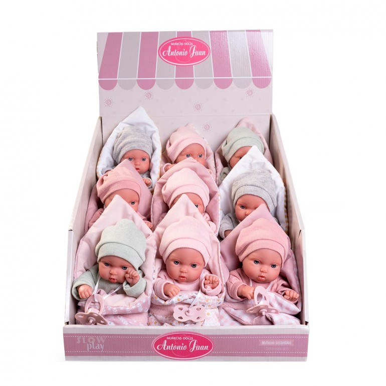Pequeñines, adorables y de simpáticas facciones, encontrarás una gran selección de modelos en sus diferentes expositores de Muñecas Antonio Juan. Estos Picolín están muy calentitos porque van todos tapados en sus arruyitos. Están fabricadas en vinilo con tacto especial y tienen el cuerpo sexuado. Miden 21 cm. Son tan pequeñinas que te las puedes llevar a cualquier lugar donde vayas para poder jugar con ellas.