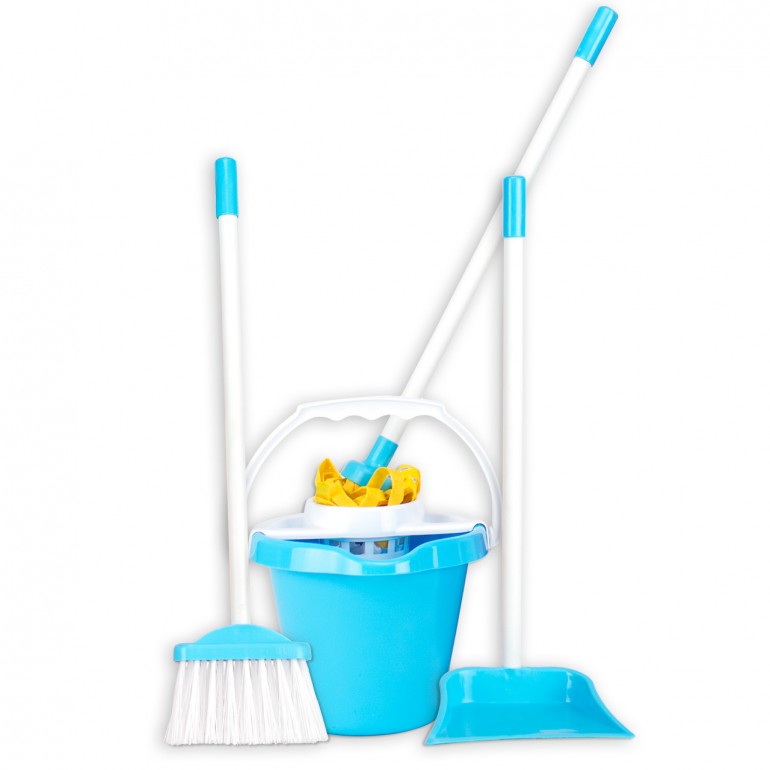 El carrito de limpieza es un set de juego completo para pequeños ayudantes. Este carrito incluye una fregona, escoba, recogedor y cubo. Los niños pueden imitar a los adultos mientras mantienen su espacio de juego ordenado. La fregona y la escoba tienen cerdas suaves y seguras para uso infantil. Además de fomentar la imaginación y la cooperación, este juguete inculca habilidades y responsabilidades en los pequeños.