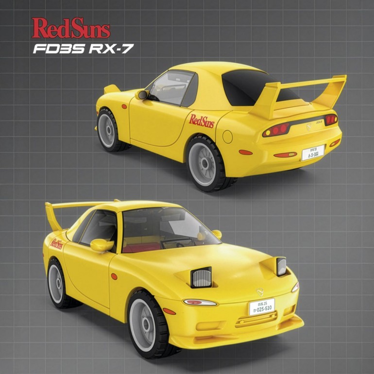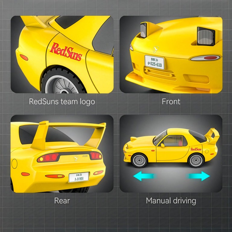 Mazda RX7-FC Blanco 66 pcs. Con doble licencia de Initial D y Toyota. Apariencia emulativa, fácil de montar. Control manual para la conducción.