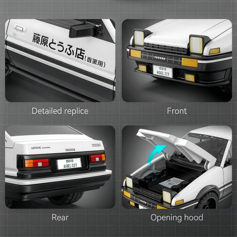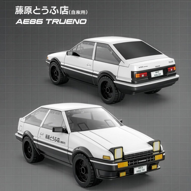 Toyota Trueno AE86 66 piezas. Con doble licencia de Initial D y Toyota. Apariencia emulativa, fácil de montar. Control manual para la conducción.