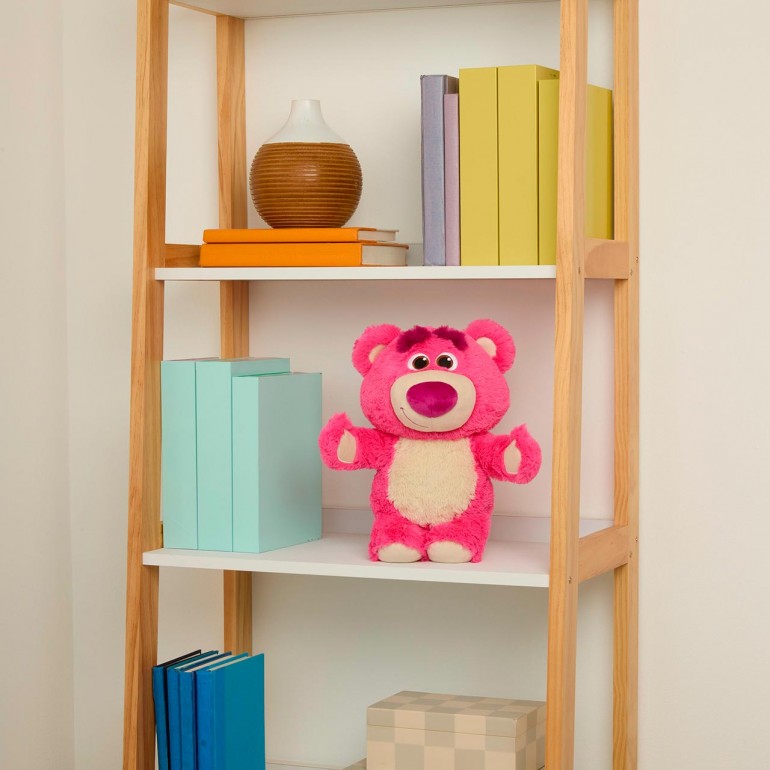 ¡Celebra el 30 aniversario de Toy Story de Disney y Pixar con tu propio peluche de Lotso! Si le aprietas la barriga, este oso de peluche de color magenta tararea, canta y se ríe. Este juguete de 34,93 cm de alto y 25,4 cm de ancho es perfecto para que los fans más pequeños puedan sostenerlo. Es un compañero perfecto de juegos, siestas y abrazos.