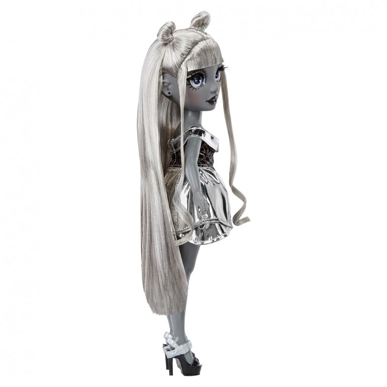 Shadow High vuelve a ser el centro de atención. Los amigos de Shadow High están llenos de sorpresas: intrépidos, seguros de sí mismos y siempre dispuestos a mostrar sus verdaderos colores. Luna Madison tiene un diseño único y va vestida de gris metálico eclipse de la cabeza a los pies. Tiene unos rasgos preciosos y detallados en su ropa, pelo liso con dos moños, largas pestañas reales y ojos de cristal.