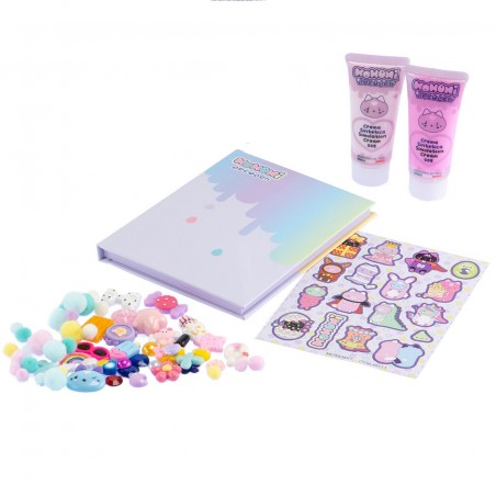 Set para decorar con crema. Contiene: diario para decorar, 2 cremas, 4 boquillas, espátula, pinzas, amuletos y pompones.