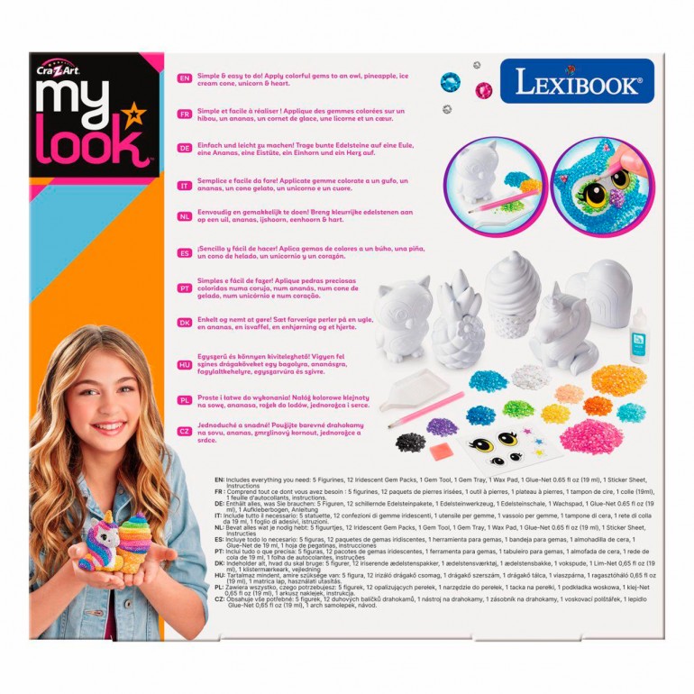 Explora tu creatividad creando impresionantes y brillantes gemas coleccionables en 3D, como un cono de helado, una piña, un unicornio, un corazón y un búho. Con 12 colores vibrantes e iridiscentes de gemas para elegir, las posibilidades son tan infinitas como tu imaginación. ¡Sumérgete en el mundo de las gemas deslumbrantes y deja que tu talento artístico brille!