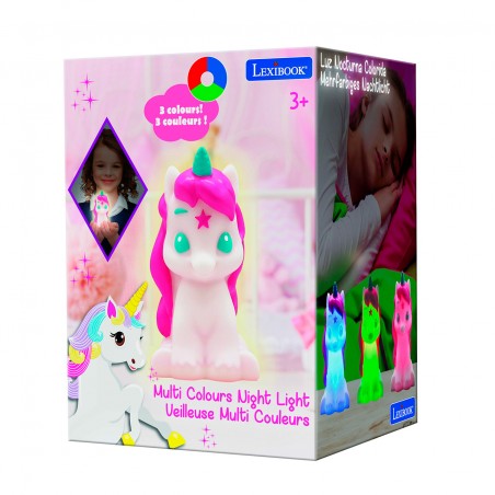 Luz LED de eficiencia energética que proporciona una iluminación suave y calmante. Lindo diseño, con un unicornio. Tamaño de bolsillo. Cambio de color: azul, amarillo, rojo, verde