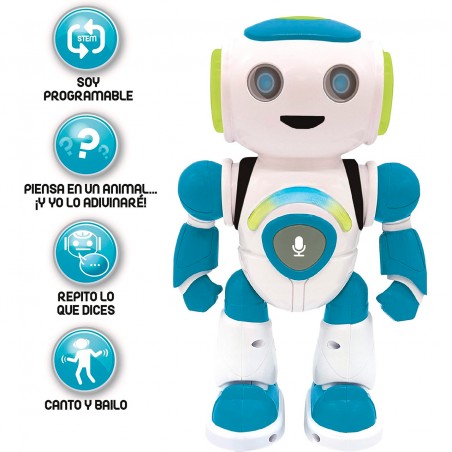 PowermanJunior es un robot inteligente que viene para explorar nuestro planeta: la Tierra! ¡Está fascinado por la biodiversidad pero ya ha encontrado (y tocado) muchos animales! ¡PowermanJunior habla español, y quiere compartir contigo sus conocimientos, así como muchos otros talentos que le harán gracia a toda a familia! Con su look entrañable, sus efectos sonoros y luminosos, y sus actividades lúdicas, se convertirá en el mejor amigo de cualquier niño o niña.