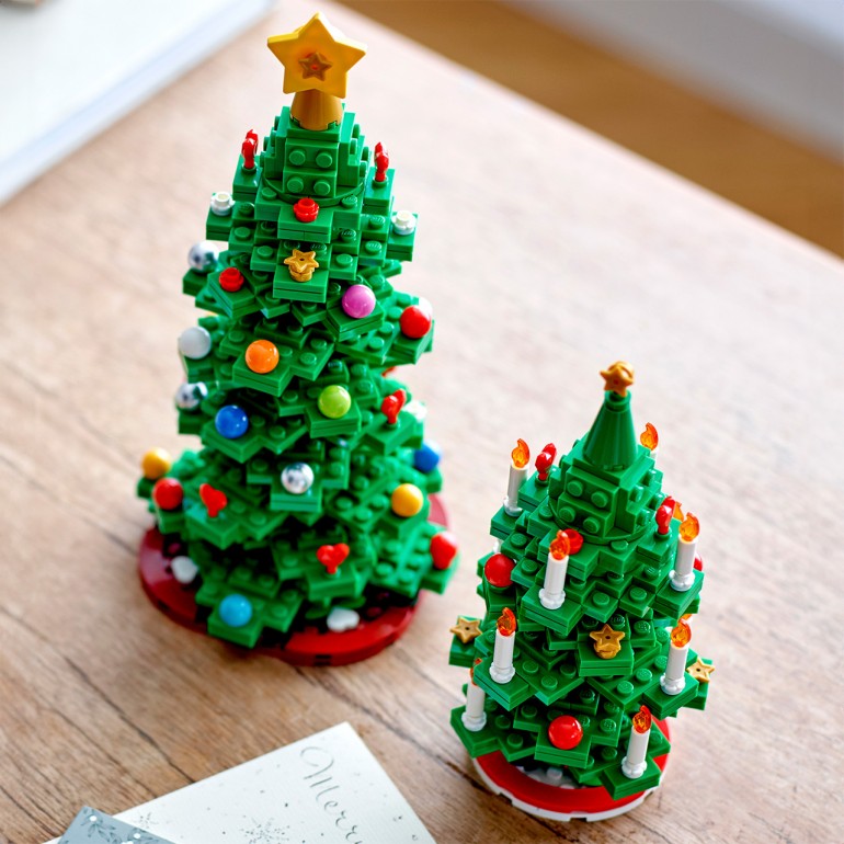 Crea un vistoso adorno festivo con el maravilloso kit de construcción LEGO Árbol de Navidad. Este precioso árbol está decorado con coloridos elementos y velas, y se apoya sobre una elegante alfombrita. Coloca la estrella amarilla en la punta para darle el toque final perfecto. Este modelo 2 en 1 te permite construir 1 solo árbol o 2 más pequeños.