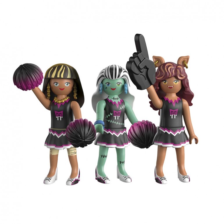 ¡Lleva el espíritu del grito a Monster High con el Escuadrón Monstuoso Playmobil! Clawdeen, Cleo y Frankie están listas para animar a su equipo a la victoria con sus temibles trajes de líderes del Miedo. Con la dinánica articulación de Playmobil, ¡son perfectas para posar en medio de la rutina o liderar la carga del espíritu escolar!
