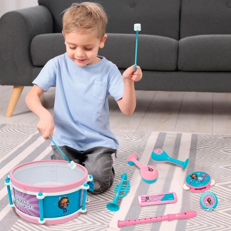 Set de 7 instrumentos de La Casa de Gabby: tambor, maracas, castañuela, armónica, flauta, trompeta y pandereta. ¡Gabby, Pandy Paws y Gabby Cats te esperan!