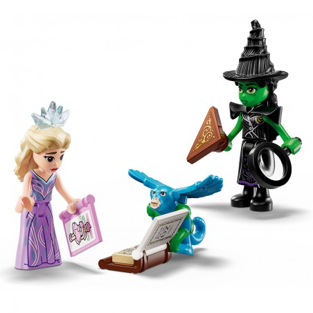 ¡No hay límites para las aventuras de Wicked que podrás ofrecerle a tu peque con el juguete de construcción Emerald City y Castillo de Kiamo Ko! Además de los minipersonajes de Glinda y Elphaba, este juguete LEGO Wicked es el primero que incluye una figura de un mono volador. Los niños podrán explorar las 2 edificaciones de juguete con los personajes y descubrir los detalles del interior. En Emerald City, pasarán el rato en el dormitorio o examinarán el mapa de Oz. En el Castillo de Kiamo Ko, leerán el libro The Grimmerie o ayudarán a Elphaba a desaparecer en el compartimento secreto para seguir su destino