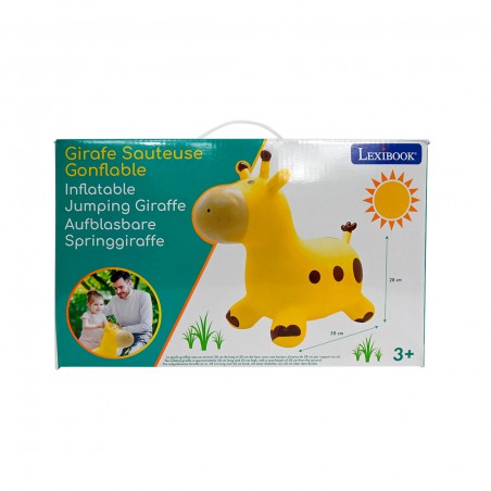 La jirafa hinchable está diseñada para proporcionar horas de diversión segura y estable saltando y rebotando. Sus cuatro patas aseguran la máxima estabilidad, mientras que el asiento ergonómico garantiza comodidad y seguridad. Con un límite máximo de 50 kg.