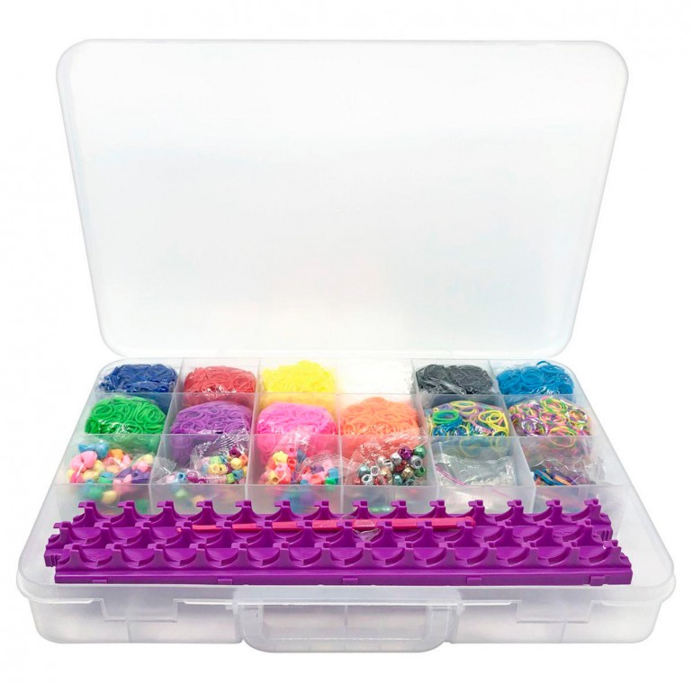 ¡Este es el kit estrella para hacer pulseras elásticas! Con 5600 gomas elásticas sin látex, 360 cuentas de colores, anillas, ganchos en forma de "S", un telar, un gancho para tejer y una herramienta para enhebrar, este set es perfecto. Ya sea como repuesto o como primer kit para hacer pulseras, a los niños les encantará todo lo que incluye y su creatividad ilimitada.