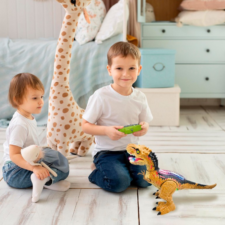 ¡Descubre el dinosaurio Tiranosaurio Rex radio control! Es fácil de controlar con el mando a distancia o el control gestual. Con movimientos articulados y rugidos sorprendentes, ¡este tiranosaurio es más real que la vida!