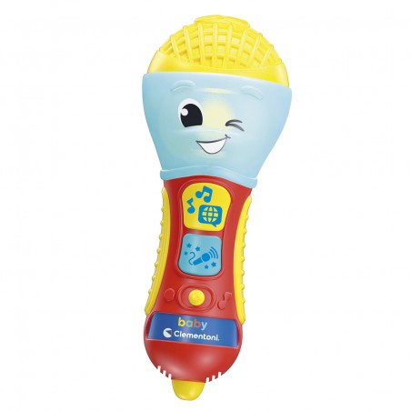 ¡Un simpático micrófono educativo que habla para los pequeños cantantes! Con una LED y 2 botones de colores, ¡amplifica la voz imitando una micrófono de verdad! Entretiene al niño con canciones y bases musicales, simpáticos efectos luminosos y efectos sonoros especiales.