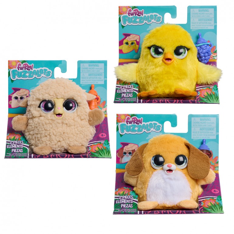 ¡Aprende a cuidar con las mascotas interactivas FurReal Fuzz-A-Lots! Con más de 25 sonidos y reacciones distintas, los niños pueden ayudar a su mascota a sentirse mejor con un abrazo o una caricia en la cabeza. Estos amigos animales supersuaves y peludos miden 9,5 cm.