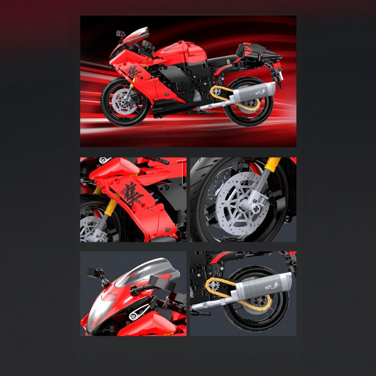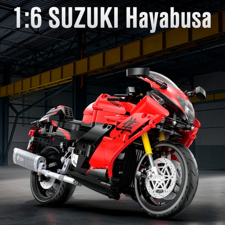 Suzuki Hayabusa escala 1:6 de 1043 piezas. Motocicleta Suzuki Hayabusa a escala 1:6, diseñada para reflejar fielmente su estilo y potencia. Cada componente está cuidadosamente recreado, desde el motor hasta los detalles del manillar. Ideal para aficionados de las motos deportivas y coleccionistas que buscan realismo y precisión.