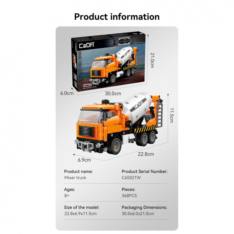 Mezcladora de Cemento de 368 piezas. Miniatura funcional de mezcladora de cemento, diseñada para reflejar la maquinaria real de construcción. Un set ideal para coleccionistas de modelos industriales o aficionados que disfrutan de la ingeniería y los detalles técnicos.
