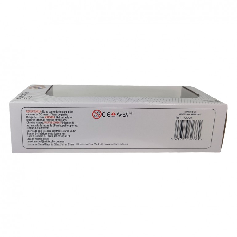 Llévate esta fiel reproducción del Autobús de la Real Madrid CF. ¡Apertura de puertas laterales y retro-fricción! Es un producto con licencia oficial del club.