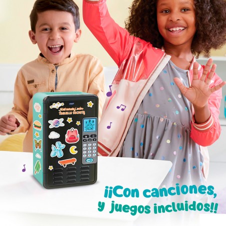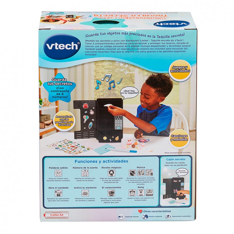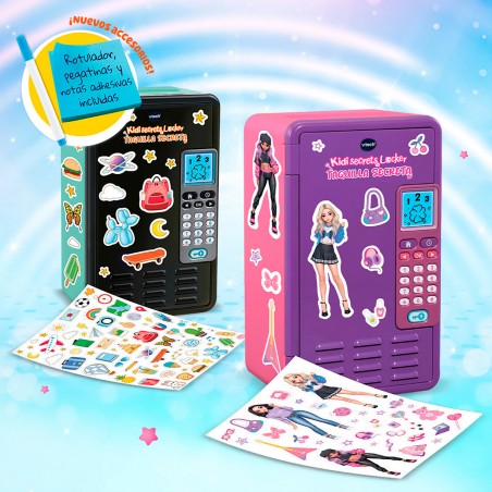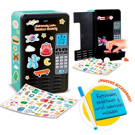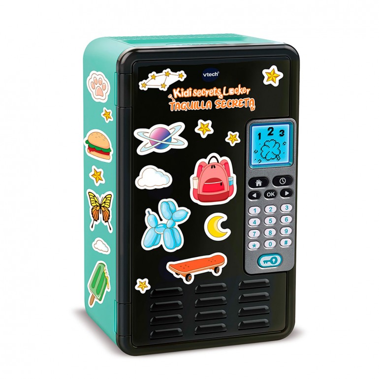 ¡Mantén tus secretos a salvo con Kidisecrets Locker! Tiene 3 compartimentos perfectos para almacenar y proteger tus tesoros. Accede al interior con un código personal de 6 dígitos. ¡Incluye despertador y divertidos juegos! También podrñas conectar un reproductor de música para escuchar tus canciones favortias. ¡Haz que tu taquilla sea única gracias a las geniales pegatinas incluidas!