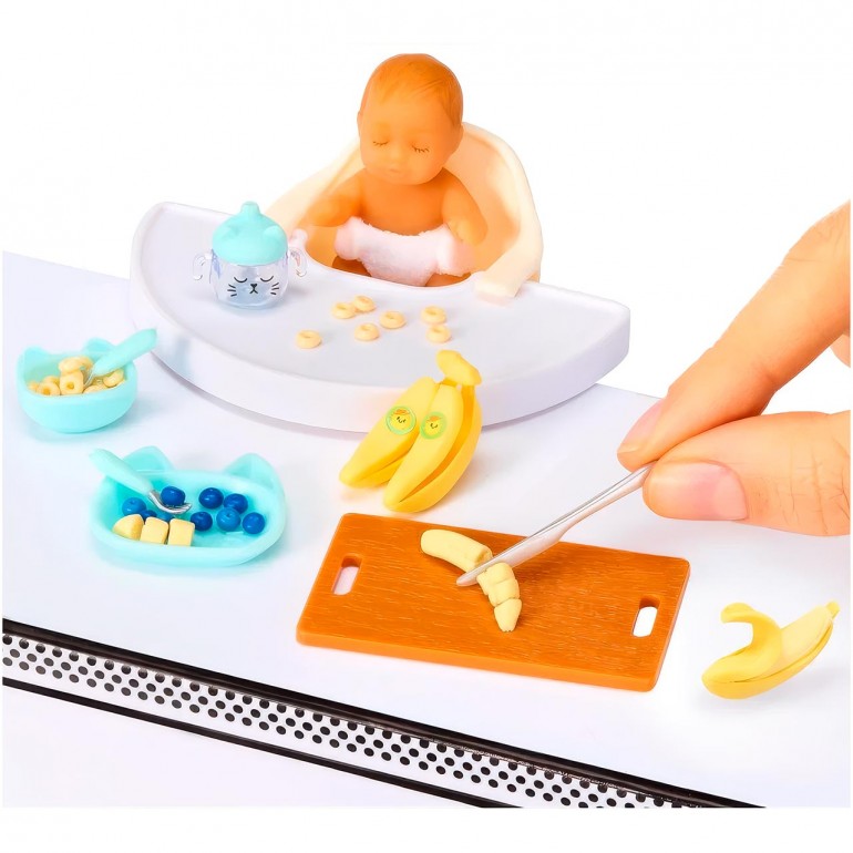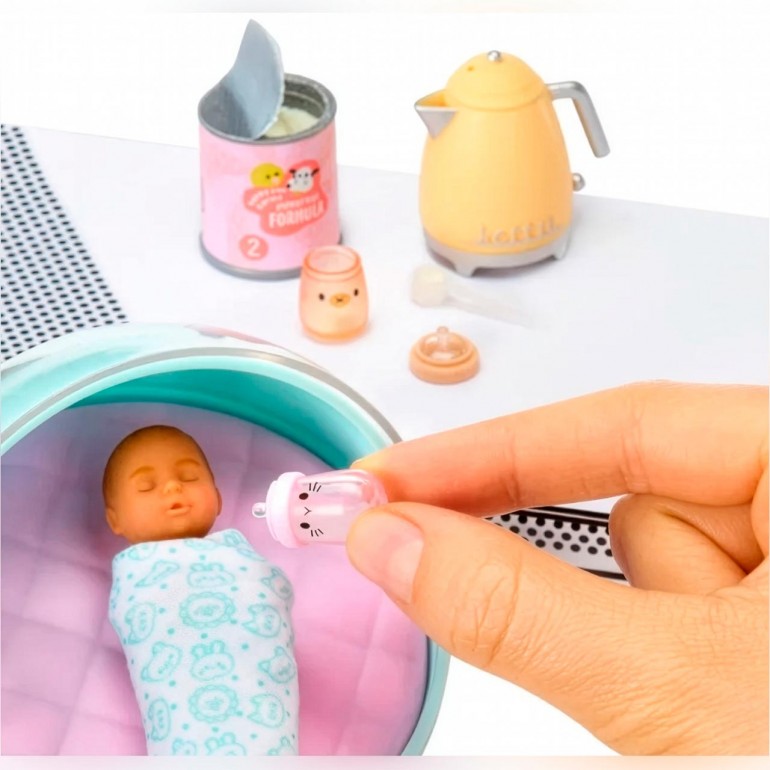 Miniverse lleva la alegría de cuidar a un bebé al mundo de los minis coleccionables. Haz purés, prepara biberones, limpia platos y cuida tu precioso bebé. Cada cápsula sorpresa está repleta de ingredientes realistas para la comida del bebé y accesorios de alimentación. Incluso descubrirás un adorable y superrealista mini bebé para cuidar en cada paquete.
