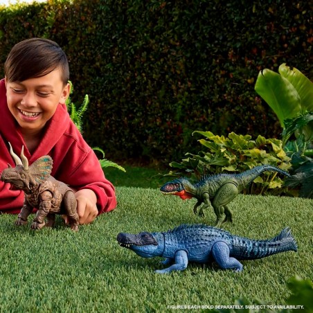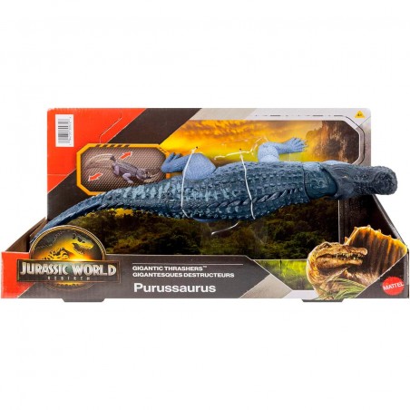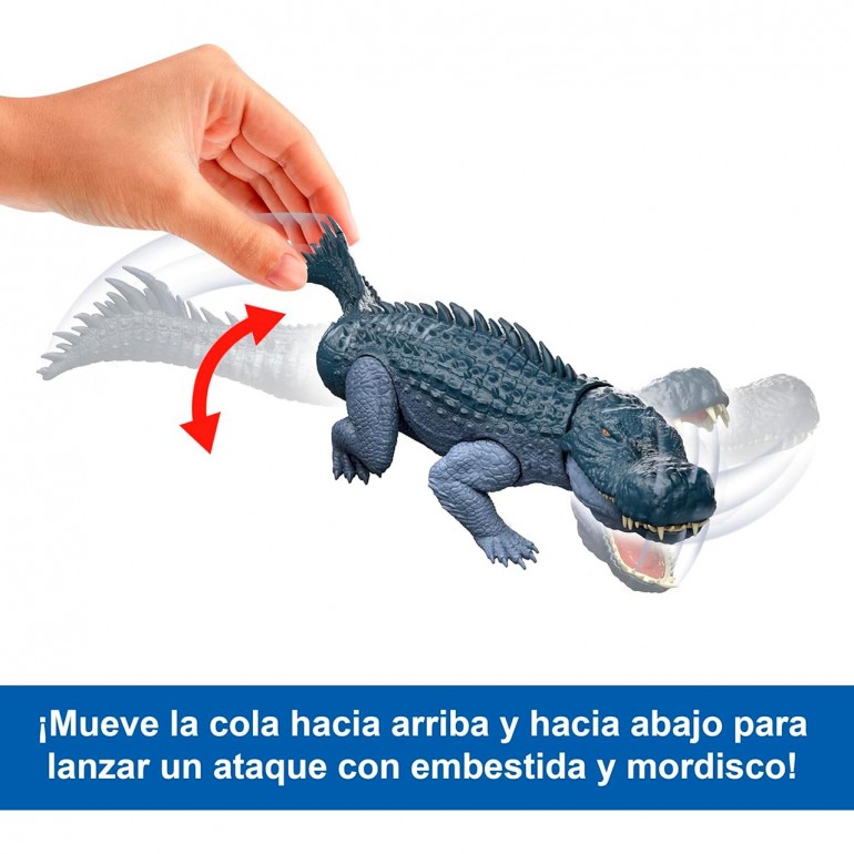 ¡Ataque con embestida! Este dinosaurio purusaurio inspirado en Jurassic World: El Renacer cobra vida con esta figura Grandes embestidas con 2 movimientos de embestida de lo más feroces. Los niños y las niñas dominarán fácilmente ambos movimientos. Para dar mordiscos deberán mover la cola del Purusaurio hacia arriba y hacia abajo, mientras que para embestir y devorar deberán hacerlo de lado a lado. Con una longitud de 37,3 cm, esta figura articulada con un detallado diseño mejorará la colección de dinosaurios de cualquier fan.