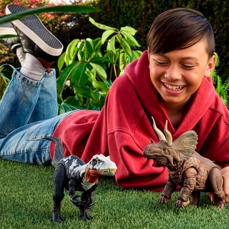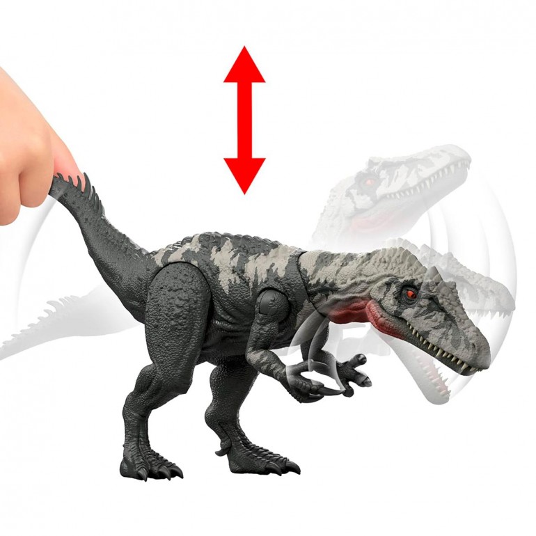 ¡Ataque con embestida! El dinosaurio quilantaisaurio cobra vida con esta figura Grandes embestidas con 2 feroces movimientos de ataque activados con la cola inspirados en Jurassic World: El Renacer. Los niños y las niñas dominarán fácilmente ambos movimientos. Para lanzar un ataque con la cabeza y las garras deberán mover la cola del quilantaisaurio hacia arriba y hacia abajo, mientras que deberán girarla para una impresionante embestida de lado a lado. Con una longitud de 35,6 cm, esta figura de especies grandes con un diseño auténtico y articulaciones mejorará la colección de dinosaurios de cualquier fan.