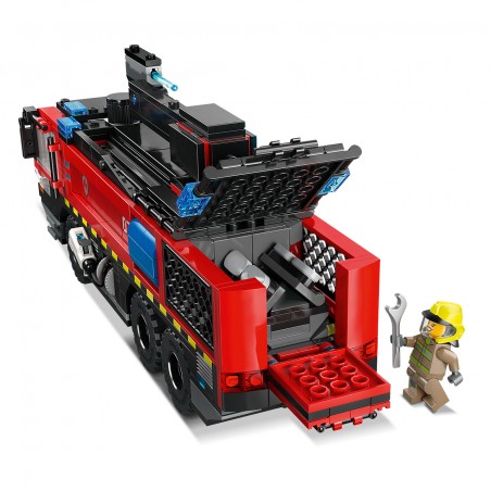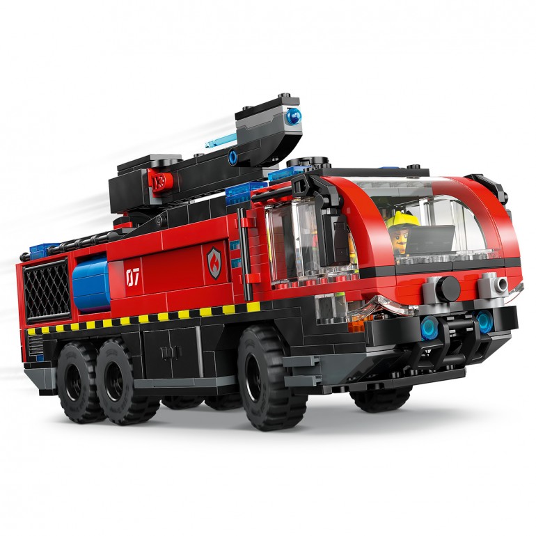 ¡Moviliza el Camión de Bomberos Aeroportuario LEGO City! Este realista vehículo de emergencia incorpora un extintor orientable de 360° para alcanzar los tejados, compartimentos laterales que se abren para el equipo y espacios de almacenamiento para las herramientas. Los peques pueden girar una rueda para conducir el camión, lanzar elementos que representan agua desde el extintor y quitar el motor para repararlo. El camión de juguete cuenta con 6 gruesos neumáticos de goma y una detallada cabina para las 4 minifiguras de bomberos. ¡Solo hay que agregar una pizca de imaginación para prender la chispa de heroicas aventuras! Contiene 691 piezas.