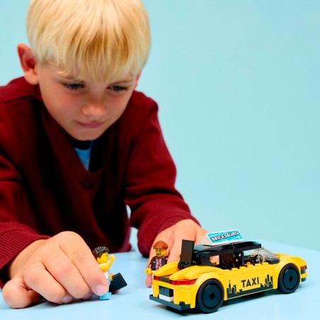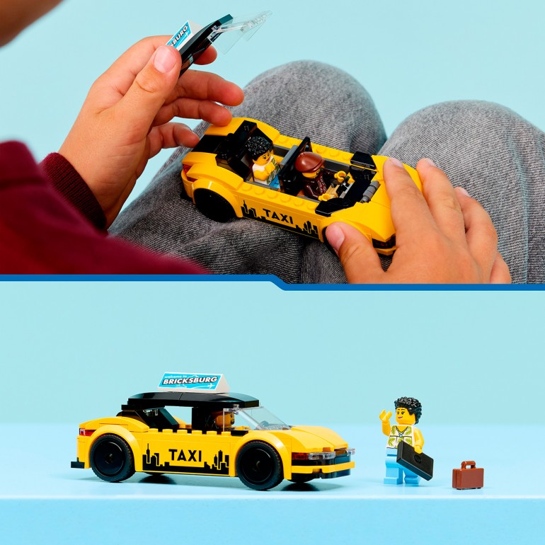 Los niños que adoran los coches de juguete y los kits de construcción de maquetas se lo pasarán el doble de bien dando rienda suelta a ambas pasiones con el Taxi Amarillo LEGO City. Este divertido set incluye un taxi amarillo con moderno diseño de vehículo eléctrico, maletero que se abre con equipaje y capó que se levanta para descubrir un elemento que representa un motor eléctrico. El fantástico coche de juguete cuenta con pegatinas impresas de una pantalla GPS, el logotipo del taxi, un anuncio sobre el techo y una batería. Los peques también pueden quitar el techo para colocar las minifiguras del taxista y el turista. El set contiene 122 piezas.