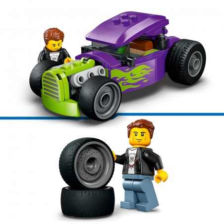 Los jóvenes apasionados de los coches de carreras pueden prepararse para palpitantes pruebas de aceleración con el vehículo de juguete LEGO® City Deportivo Clásico. Este kit de construcción de un modelo de coche ofrece emoción a raudales con sus detalladas características de competición, como grandes neumáticos traseros, habitáculo con techo descapotable y una atractiva carrocería morada con llamaradas verde neón. ¡Incorpora la minifigura del conductor y podrás dar vida a trepidantes historias! Contiene 81 piezas.