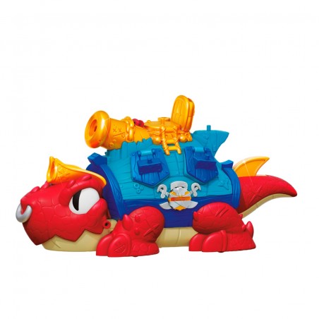 Tortuga con capitán Piratix exclusivo. Aprieta el gatillo para abrir y cerrar la boca y atrapar a los enemigos. Utiliza el tesoro exclusivo para disparar o para resolver el puzzle secreto y abrir el caparazón. Incluye 1 King Turtle, 1 Capitán Piratix exclusivo, 1 bandera, 1 tesoro exclusivo y 1 proyectil.