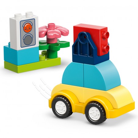 ¡Lleva la creatividad sin límites a las manos de tu bebé con el set Mi Primer LEGO DUPLO Vehículos Creativos! Este juguete de aprendizaje incluye un montón de ladrillos, elementos y funciones móviles que pondrán en marcha su imaginación. Primero, los preescolares construirán los modelos principales: un helicóptero LEGO DUPLO con rotor giratorio, un volquete con caja articulada, un camión de bomberos con escalera abisagrada y un cochecito familiar. Luego ejercitarán sus habilidades motrices finas y la coordinación mano-ojo para separar los ladrillos de estos vehículos y usarán su creatividad y más ladrillos para dar forma a nuevas creaciones, ¡como coches de policía, un camión larguísimo o un autobús de dos pisos! Contiene 42 piezas.