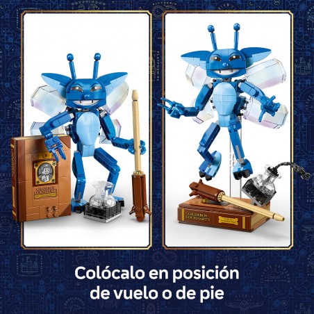 Despierta la imaginación de tu peque con el primer modelo LEGO a tamaño real de un duendecillo de Cornualles como los que aparecen en Harry Potter y la cámara secreta. Diseñada para exponer y jugar, esta figura articulada te recordará el caos provocado por el Profesor Gilderoy Lockhart cuando abrió una jaula llena de estos duendecillos endiabladamente engañosos durante una clase de Defensa Contra las Artes Oscuras. Coloca a tu Duendecillo de Cornualles en el soporte transparente de exposición, como si estuviera volando, o ponlo de pie y juega con él. Este juguete de construcción incluye también emblemáticos accesorios para que expongas la figura con el libro de Gilderoy Lockhart construible y un tintero que se está derramando. El set contiene 320 piezas.