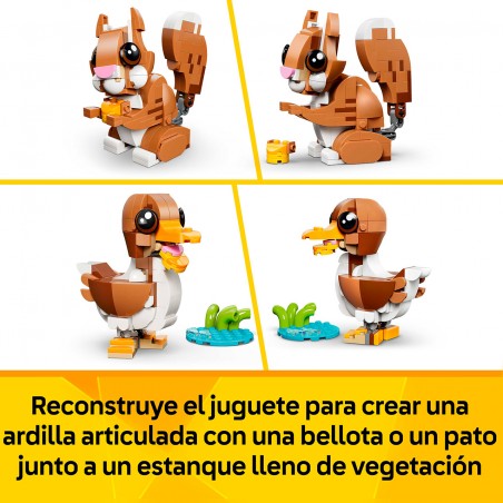 ¡El set de construcción LEGO Creator 3 en 1 Simpáticos Animales: Cachorro Juguetón te permitirá interpretar divertidas historias! Los peques pueden construir un perro con cabeza, orejas, patas, cola, cejas y boca articuladas que viene con un collar, un hueso de juguete y un cuenco de agua. Después, todo esto lo podrán convertir en una ardilla con cabeza y cola articuladas que sostiene una bellota, o transformar en un pato con cabeza articulada y un estanque lleno de vegetación. Contiene 336 piezas.