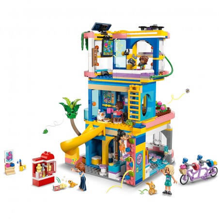¡Anima a tu peque a dejar volar la imaginación mientras explora el set de juguetes LEGO Friends Club Friends HLC! Las niñas y los niños podrán crear misiones secretas e infinitas historias con este set. Disfrutarán de aventuras en la tirolina, el tobogán y el muro de escalada. Resolverán un misterio con el ordenador oculto y el dron. Cuidarán de las mascotas, pintarán en el caballete o prepararán tentempiés en la cocina. Sea cual sea su pasión, ¡pueden explorarla aquí! Este set de construcción incluye 5 minipersonajes, un gato, un geco hembra y una conejita. También trae comederos y agua, máquina de palomitas, televisor con mandos de videojuegos, frigorífico, dónuts, fresas, gofres y más. El set contiene 794 piezas.