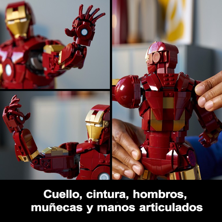 Los fans adultos de las aventuras de superhéroes ya pueden recrear el aspecto de Iron Man en Vengadores: Saga Infinity, de Marvel Studios, con la figura LEGO Marvel Iron Man Mark 3: Edición para Coleccionistas. Este set de construcción, por sus 1297 piezas y sus aproximadamente 38 cm de altura, es un fabuloso regalo de cumpleaños para fans de Iron Man y amantes de LEGO. Ajusta la posición del cuello, la cintura, los hombros, las muñecas y las manos articulados de la armadura Mark 3 de Iron Man para colocarla en dinámicas posturas de exposición. Contiene 1297 piezas.