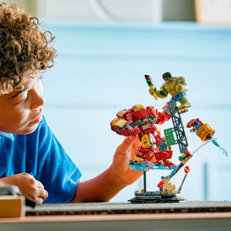 ¡Da vida a una emocionante escena de Vengadores: La era de Ultrón, de Marvel Studios, con el set de construcción Marvel Batalla Legendaria: Hulkbuster vs. Hulk! Iron Man lucha contra Hulk con la ayuda de su Hulkbuster, y la acción se desarrolla en una calle llena de escombros, estructuras de acero que se derrumban y un semáforo que Hulk puede utilizar como arma. La armadura Hulkbuster está totalmente articulada para poder colocarla en múltiples posturas. Contiene 413 piezas.