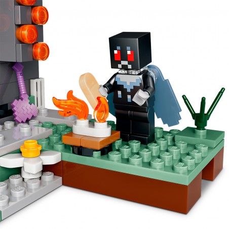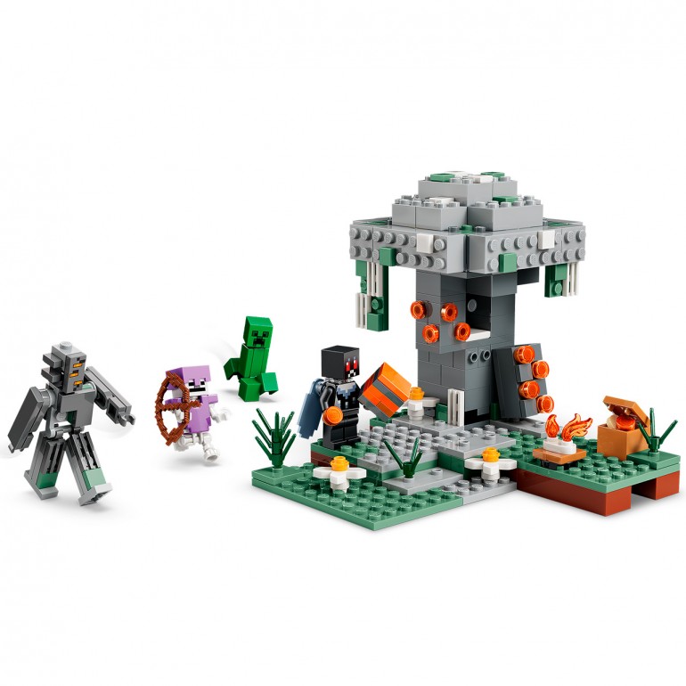 Un Crepitante para construir se enfrenta al heroico Hombre Polilla alado mientras un Creeper y un esqueleto merodean por el bioma Jardín Pálido. Cubierto de musgo y flores de ojo, el roble pálido del juego contiene una preciada resina y el importante corazón de Crepitante, que los peques pueden recuperar quitando la corteza o empujando el pasador de la parte posterior del árbol para expulsarlo. La minifigura del Hombre Polilla tiene élitros y empuña un hacha encantada, y la minifigura del esqueleto lleva armadura de diamante y porta un arco. Hay también un cofre de almacenamiento, grumos de resina, una fogata y una chuleta de cerdo. El set contiene 243 piezas.
