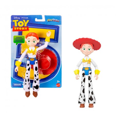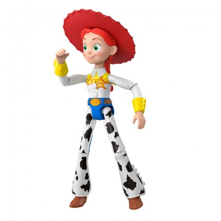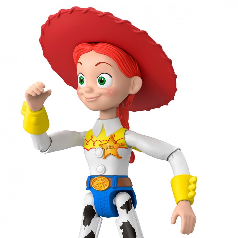¡Yiiihaaa! La magia de las películas Toy Story de Disney Pixar llega a casa con esta figura de acción de Jessie, la vaquera pelirroja. Lleva con orgullo la placa de sheriff que Woody le dio en Toy Story 4. Jessie tiene un diseño y una movilidad fieles a la película, por lo que este juguete está listo para ayudar a algunos animalitos o unirse a sus amigos en una aventura. Su sombrero de vaquera es de quita y pon. Con 12 puntos de articulación, incluyendo codos, muñecas, caderas y rodillas, Jessie está lista para adoptar poses dinámicas. ¡Recrea escenas de las películas o imagina otras nuevas!